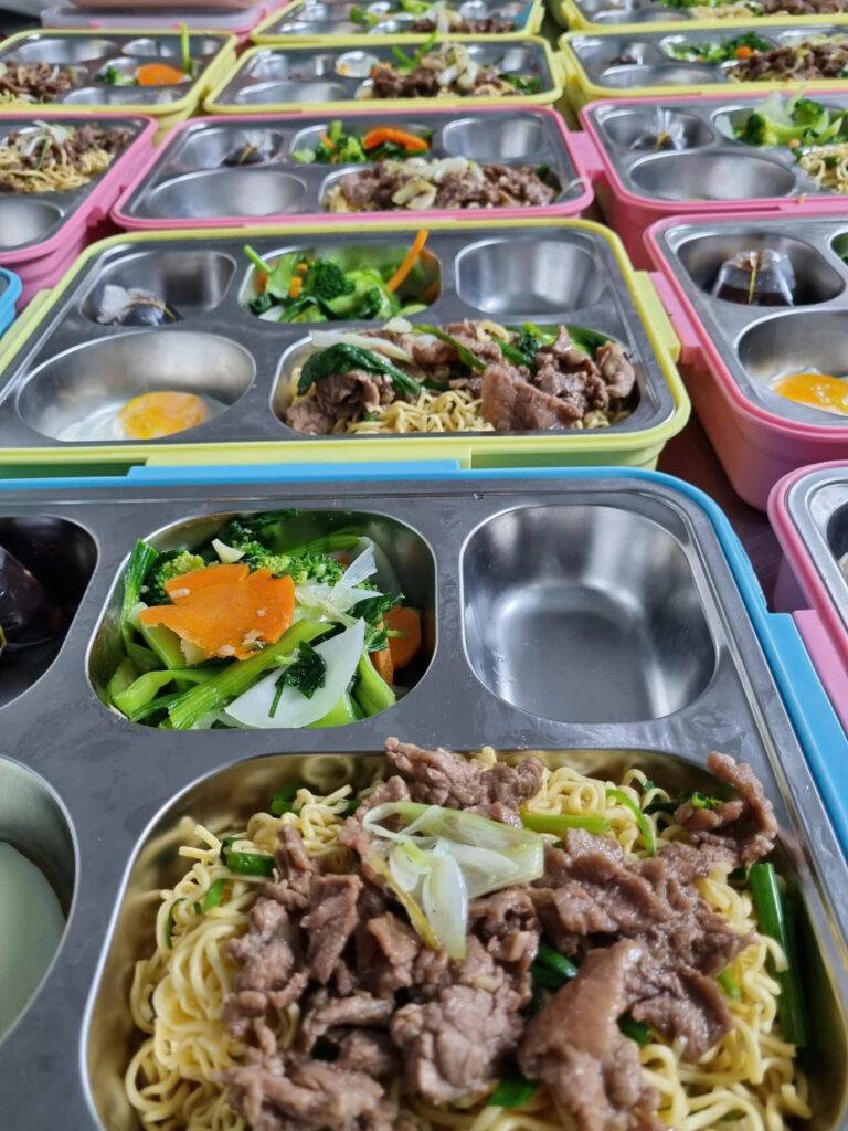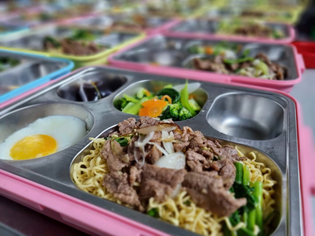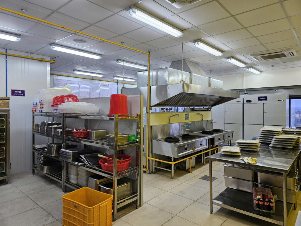 Suất ăn được chế biến tại bếp ăn đạt tiêu chuẩn vệ sinh an toàn thực phẩm, sau đó được đóng gói và vận chuyển đến trường học. Chúng tôi đảm bảo suất ăn luôn nóng hổi và giữ nguyên hương vị tốt nhất.
